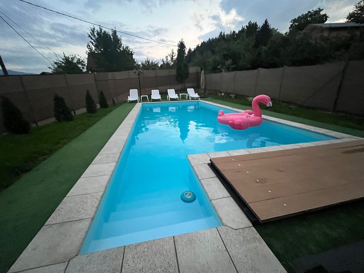 Well-lighted, spacious house of a 80 m2 consists of large living room, kitchen and bathroom on the ground floor, 2 bedrooms and a gallery on the first floor. The road to the house is newly asphalted. The whole property, including a huge yard of a 2000m2 is fenced, to provide complete privacy to our guests. From the living room there is an exit to a spacious terrace under which is a swimming pool of a 32 m2. Next to the swimming pool there is an additional unit completely equipped for a barbecue.