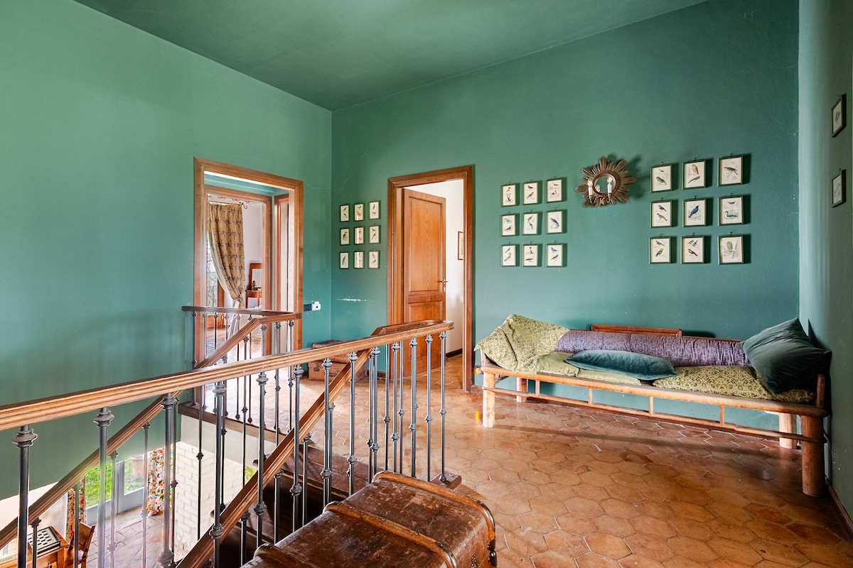 La villa di 200mq si sviluppa su due livelli. E' circondata da un ampio parco con piscina di acqua salata condivisa con un'altra unità che ospita 6 persone. Al piano terra ampio salone con camino, cucina full optional con terrazza, una camera matrimoniale con bagno. Al 1° piano quattro camere e tre bagni . La villa è ben collegata con Roma. Con la macchina si può raggiungere la stazione di "Montebello" da cui partono treni per il centro ogni 30 min. A soli 15 km dalla Autodromo di Vallelunga.