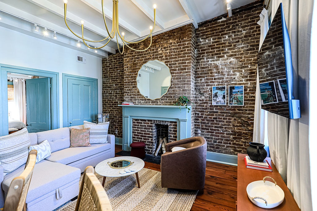 Enjoy our peaceful and spacious condo, perched on the second floor of our historic Savannah estate, just steps away from Forsyth Park! This 1-bedroom, 1-bathroom condo (with a convenient pull-out sofa, great for your extra guest!) is the perfect home base for your Savannah stay! Fully-equipped kitchen with all the amenities, cozy and comfortable living space with flat screen SmartTV, fast WiFi, and the cherry on top...a HUGE private balcony! SVR 01789