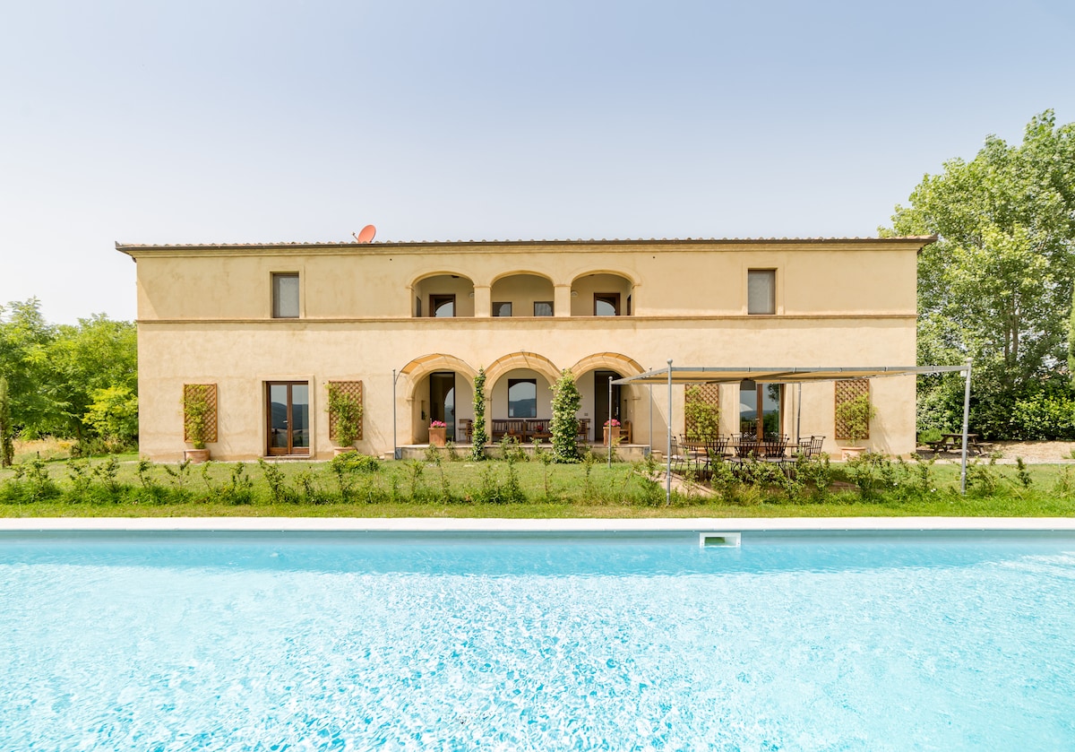 The Villa, immersed in the Sienese countryside, is furnished in typical Tuscan style and made comfortable by the most modern amenities. Beautiful 7x14 swimming pool (max height 2.10 m) and comfortable Hot Spring whirlpool tub for the exclusive use of a single group of guests. The furnished porch allows a pleasant outdoor stay. The garden is fenced. The rooms are unoccupied and with separate entrances inside the villa. Use of the hot tub must be requested at the time of booking.