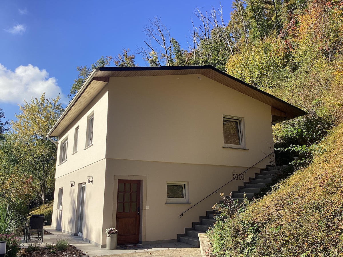 Completely renovated former flagman's house situated on the international cycling trail "RAVEL" which leads from Troisvierges (Luxembourg) to Aachen (Germany), 125 km. The railway tracks were demolished and flooded. The house is now situated near a small stream, surrounded bay nature in complete quietness, far from any settlement.