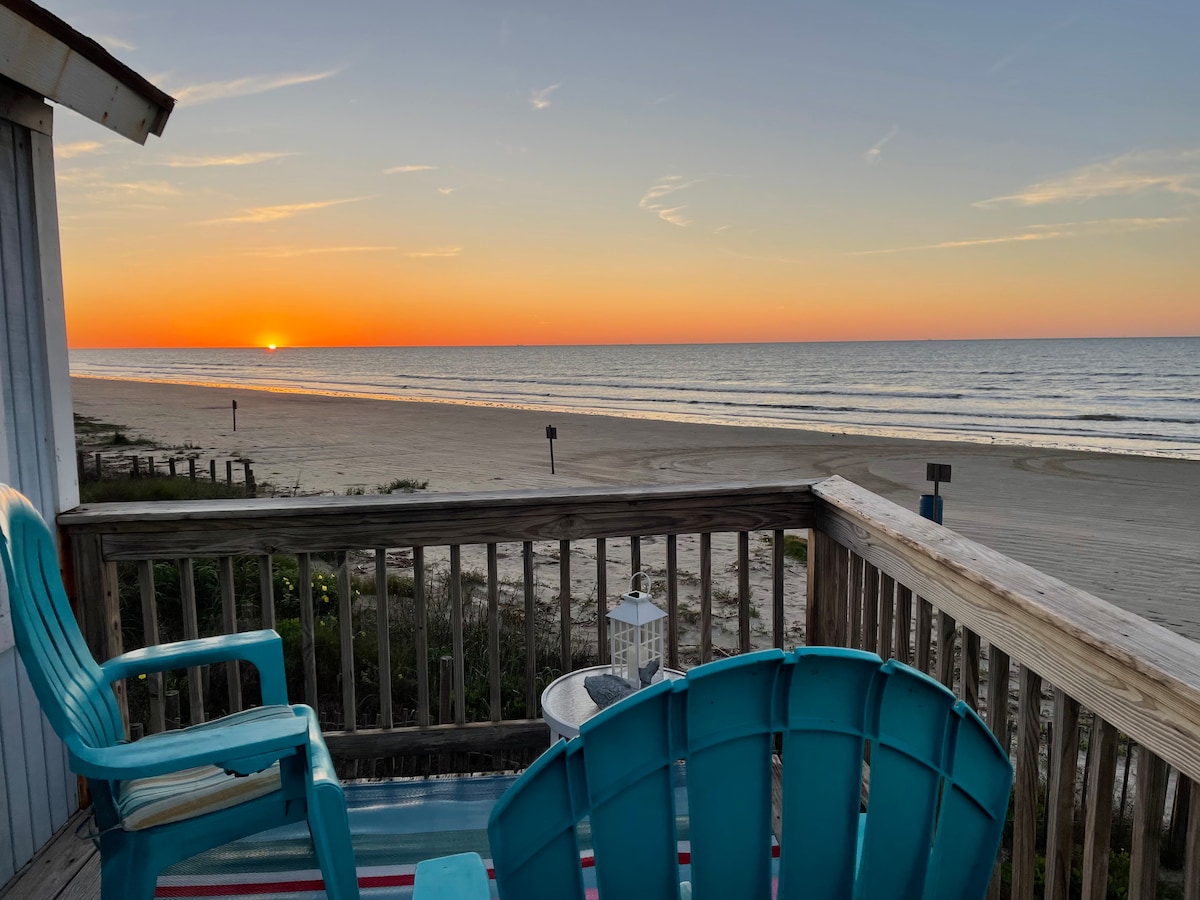 Relax with the whole family at our sturdy & newly renovated beach home, located steps away from the beach. Our large home is situated on an expansive corner lot & features beach and bay views. Enjoy listening to the ocean waves & stunning sunsets while you sip coffee or wine from our oversized deck. Enjoy s’mores from our outdoor fire pit. Our home is not a typical Galveston AirBNB as it is our family’s vacation home and very well maintained.