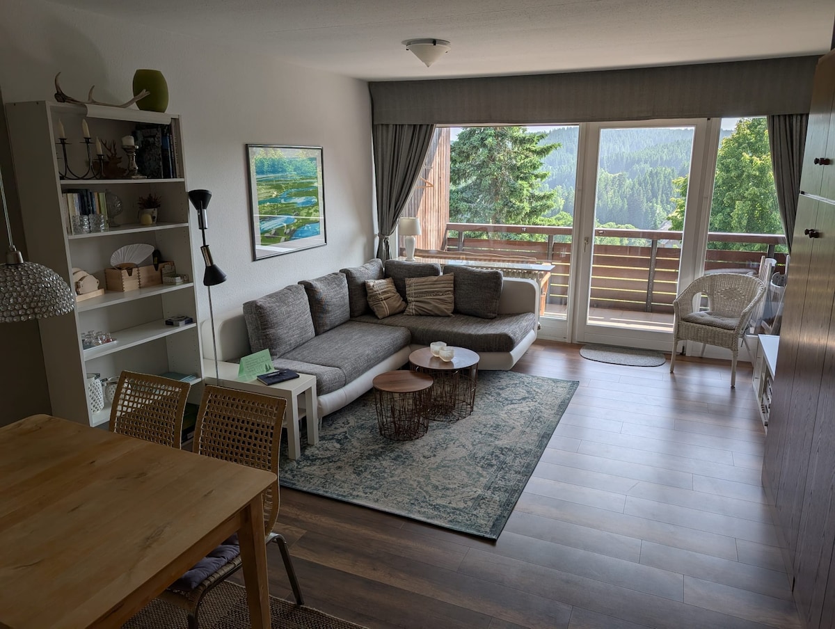 Cozy apartment (40 sqm) with balcony. View of the beautiful Black Forest landscape. South orientation, therefore sun all day! Hiking trails directly from the apartment. With elevator. Parking space in the underground garage. Washing machine is available in the laundry room. Bread service. Swimming pool, sauna, table football, tennis court, playgrounds.