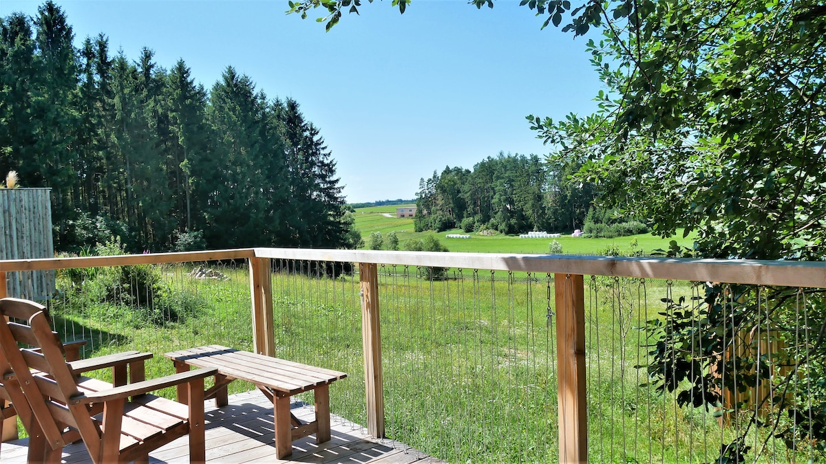 Sonnenhaus zum Auftanken am Waldrand mit Sauna