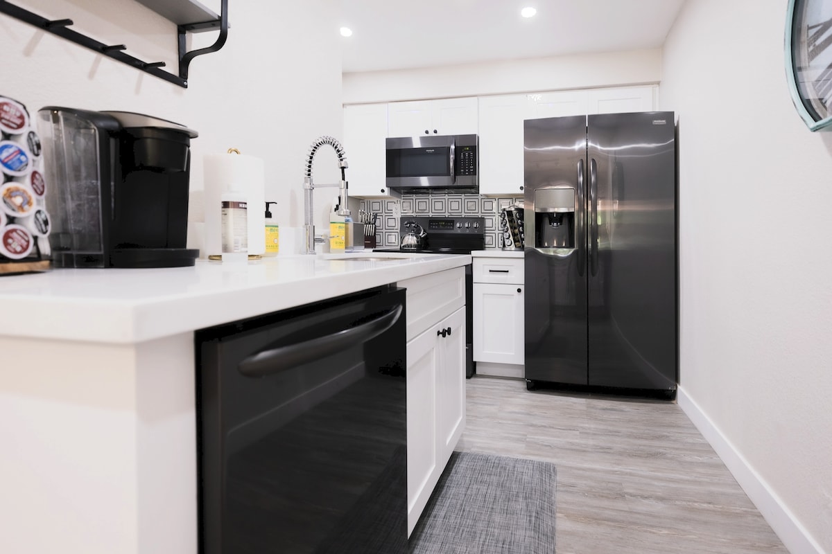 Located minutes from the heart of Old Town, this freshly remodeled condo is your home away from home. No detail has been overlooked. Hosted by local Superhost for the best experience. This spacious one bedroom/one bath condo has everything you need for long or short stays. Premium hybrid king bed with all cotton high thread count sheets for an amazing night's sleep. Living room with queen sofa bed. Well stocked kitchen including coffee maker, crock pot, toaster, blender, spice rack and more.