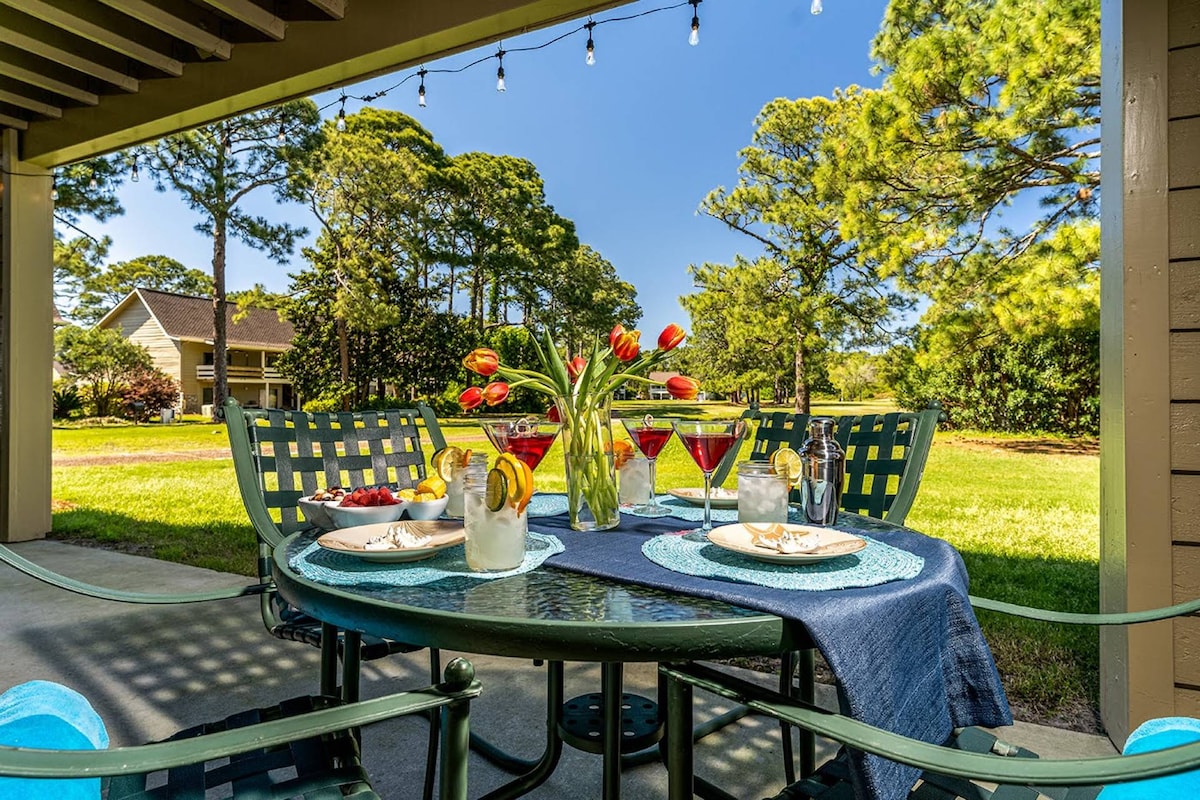 -Lakefront with great views of Lake Stewart on the 14th hole off our double screened in patio. We are steps away from white sand beaches of the Gulf of Mexico. -Two Primary en-suites bedrooms, each with a king-size bed. Shopping, coffee bar & restaurants/bars within walking distance. Explore on foot or rent a golf cart/scooter at a near by vendor. This is a ground floor condo with drive up parking. All the comforts of home in our golf villa located in beautiful Seascape Golf & Tennis Resort.