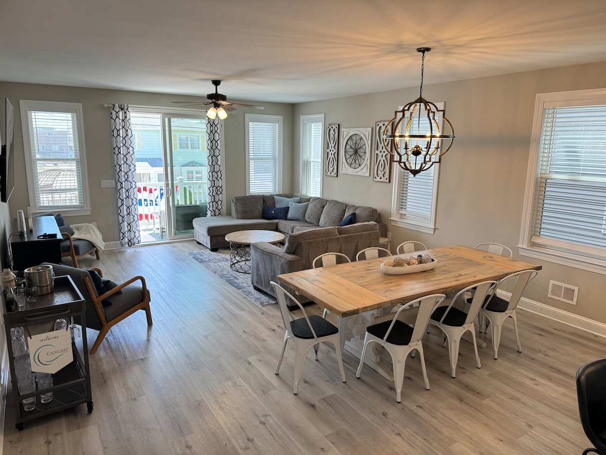 Unit #3 is a cozy, modern, and luxurious newly renovated downstairs apartment just 100 steps from the boardwalk and beach. Perfect for families and friends, it features all-new stainless-steel appliances, a fully equipped kitchen with dishwasher, washer and dryer, smart TV in living room and queen bedroom and USB/USB-C outlets. Free Wi-Fi, dedicated workspace, all linens and towels included, Beach essentials included: 4 beach badges, 4 beach towels, and 4 beach chairs.