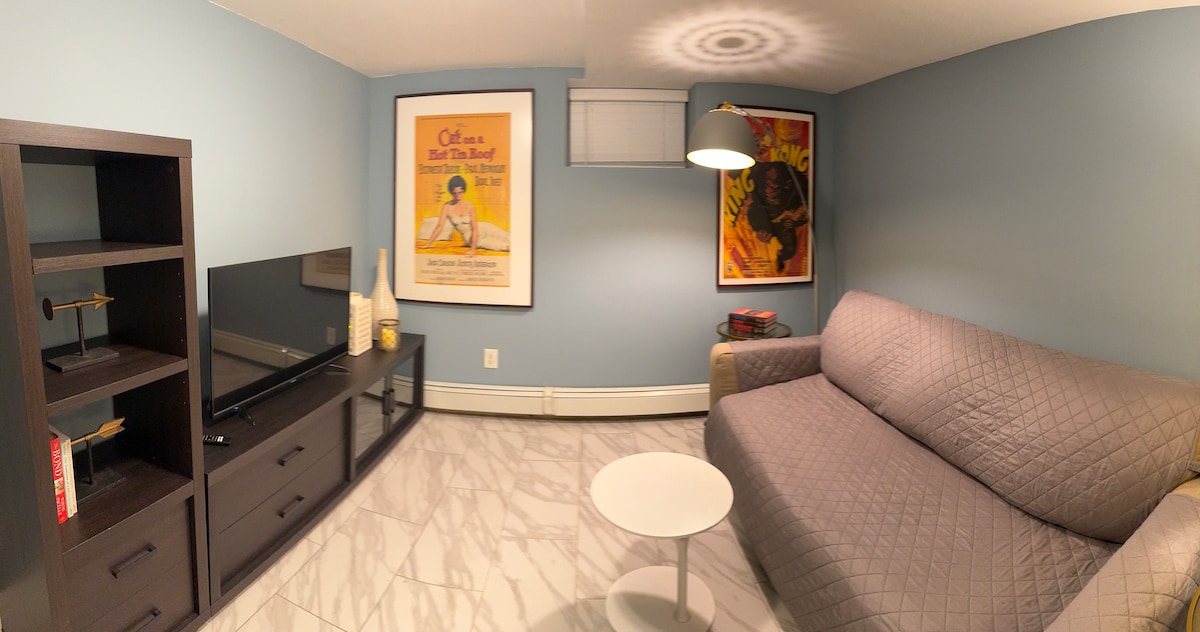 Enjoy a comfortable stay in this inviting garden level apartment featuring a bright living room, a fully equipped kitchen, and a large bedroom. The bathroom is modern, clean and well-lit, with a ceiling air vent for comfort. Guests enjoy direct backyard access—perfect for morning coffee or relaxing after a day out. Conveniently located near bus connections to NYC and minutes from Hoboken, this apartment offers a peaceful retreat for couples or solo travelers with easy city access.
