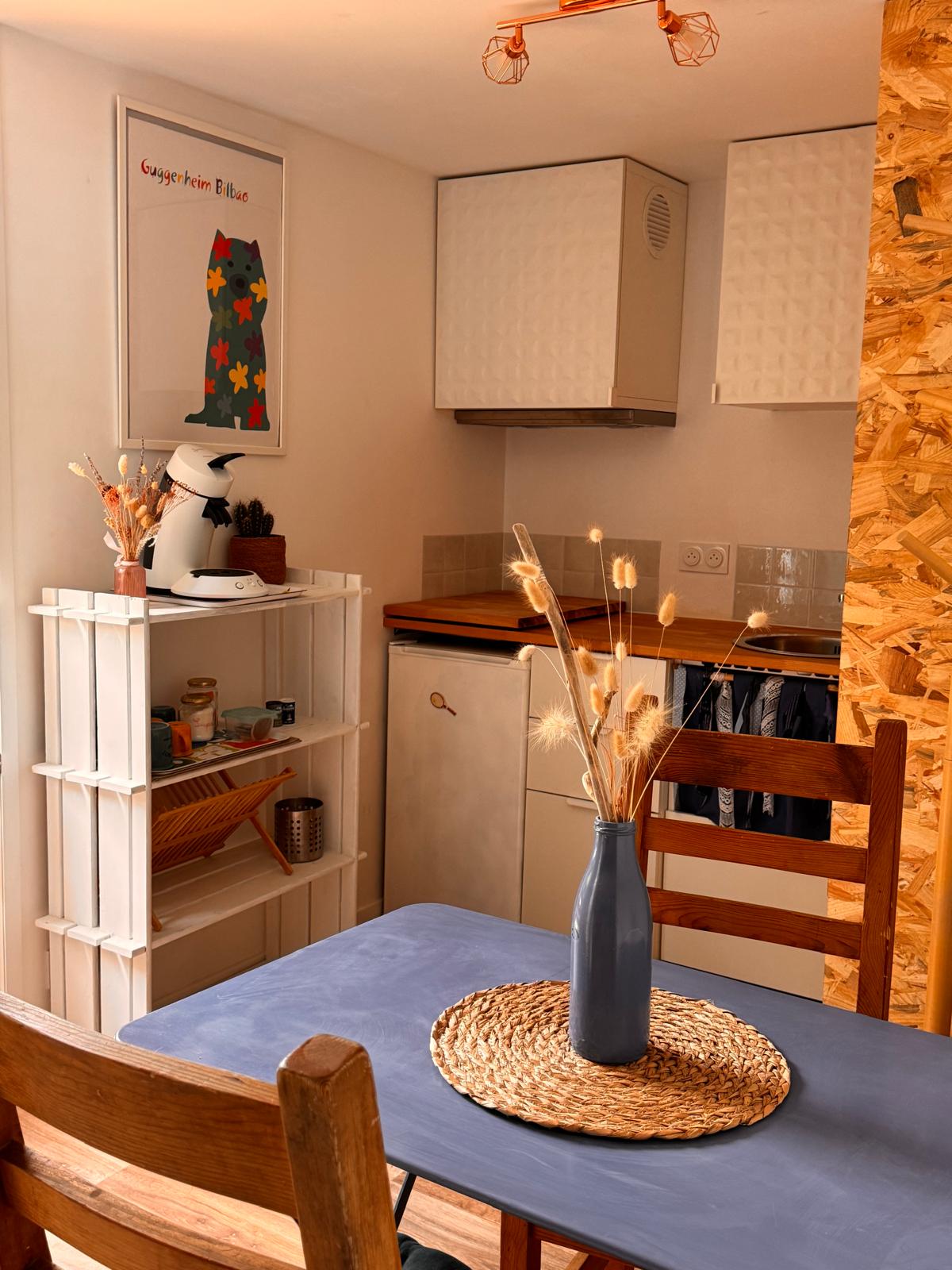 Cozy and functional studio, completely redone, with heating for a stay even in winter. It has a sofa bed for two people and a mezzanine bed (child). Facing west, the apartment has views of a green space and, in the distance, the dunes. ⚠️ From September 7, work will take place in the residence. Due to possible noise and the inability to use the balcony, a 25% discount is applied for the duration of the work.