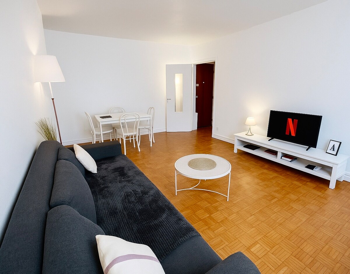 Superb 57m2 flat on the 1st floor of a magnificent old building with sublime parquet flooring, brand new, fully equipped and located in the beautiful, quiet town of Le Raincy, just 20 minutes from Paris ! The flat is ideally located close to all the main shops, restaurants, pharmacies and, above all, the RER station in 5 min by walk, which takes you to the heart of Paris (department stores, Opera, Haussmann) in just 20 minutes.