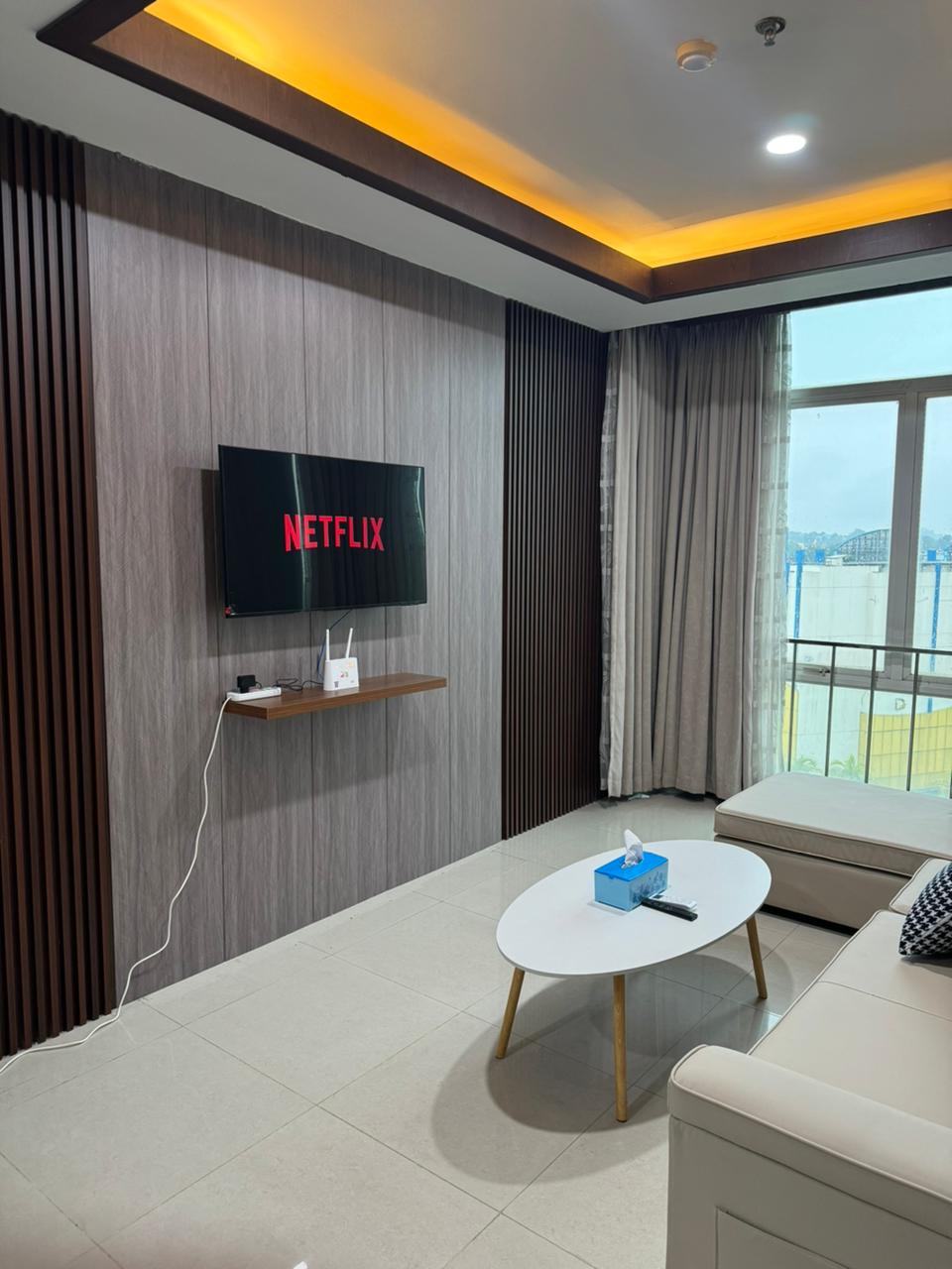 Clean and Cozy 2 Br Apartment in central Batam, newly renovated with Panoramic city view and singapore view. Very spacious, equipped with pantry and dining table, Sofa Bed, 55” Android TV. Location in central Nagoya, only 5 minutes to Ferry Terminal (harbourbay), Nagoya Hill Mall, Nagoya Foodcourt, GrandBatam Mall, BCS Mall, A2 Foodcourt, 10 minutes to Batam Center, 20 minutes to Airport. Super convenient 👍🏻 Swimming Pool and Gym in 5th Floor