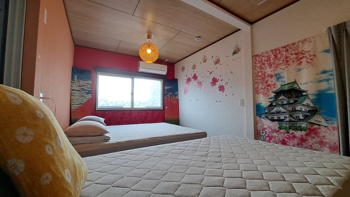 Located next to Tezukayama 4-chome Station . Easy access to Tennoji (15 minutes) and Namba (20 minutes), and a 5-minute walk from Tezukayama Station. Enjoy a relaxing stay. Maximum Occupancy: 4 guests Bedding: Two single beds and two futons Have washing machine with detergent(share) The Sumiyoshi Taisha Shrine and Sakai, known for its cutlery, are easily accessible. No Cooking No elevator Short-term and long-term stays available Special Experience: Enjoy meeting locals at the bar next door.