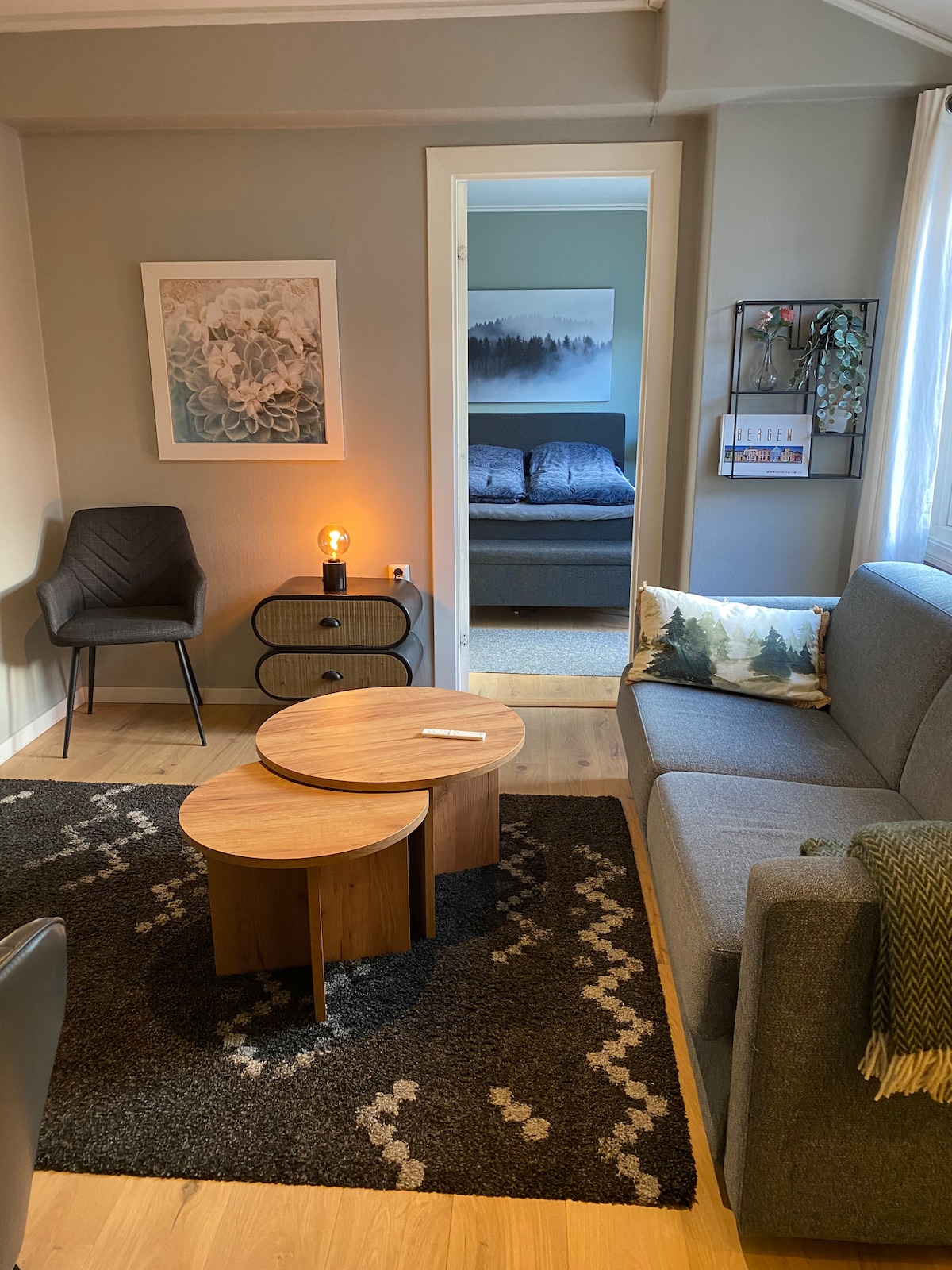 Modern 2-room apartment in the middle of Bergen city center rented for short and long stays. The apartment provides following facilities: - Newly renovated / modern style - 1 bedroom with 180x200 double bed - 1 bathroom - Open living room / kitchen solution - Well-equipped kitchen suitable for cooking - Check in/out yourself with key box - Close to train station and public transport - Parking is recommended 24 hour parking one of the city's public parking garages - 90x200 air mattress can be prepared for a 3rd guest