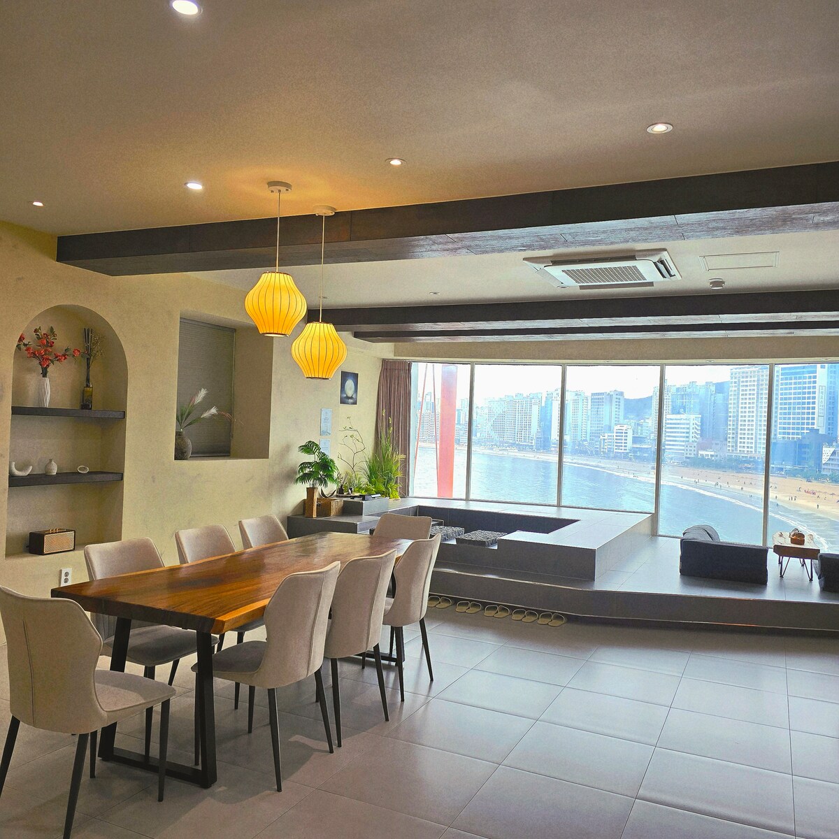 [Gwangan Secret Ocean Room] “The sea unfolding in front of you, staying in your emotions.” This is an ocean-view accommodation with a view of Gwangan Bridge and the sea beyond the open window. 📍Enjoy a relaxing time with music in a cozy space full of natural light. This is a space to complete your own trip to Busan. Perfect for couples, families, and friends! Gwangan Bridge Full Ocean View 📍Right in front of Gwangalli Beach! Enjoy the breathtaking view of Gwangan Bridge in the bedroom and living room at the same time. “Gwangan Bridge View in front of you, and a cozy break.” Experience a special day in a private ocean view accommodation. ✔️Full window ocean view ✔️ Emotional interior & Marshall speaker ✔ New apartment, the most popular accommodation in Gwangalli ✔ Panoramic ocean view + city view + Gwangan Bridge view ✔ Emotional interior & premium amenities ✔ Walking distance to Milak Dermarket and Hwaleo Center 📍The best view that offers different charms day and night. Share your life with your loved ones.