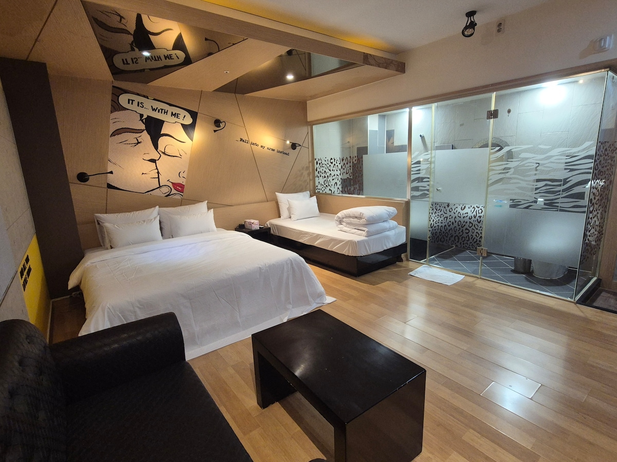 This room consists of a king size bed + bathroom.We boast a pleasant environment and a spacious parking lot. There is a sculpture park nearby, so it is very good for a walk. Located in the center of Masan, it is convenient for transportation and has very good access to major tourist attractions such as Jinhae Marine Park, Cherry Blossom Festival, Masan Fish Market, and baseball stadium, as well as major business facilities such as government offices and companies. This accommodation has both accessibility and style.