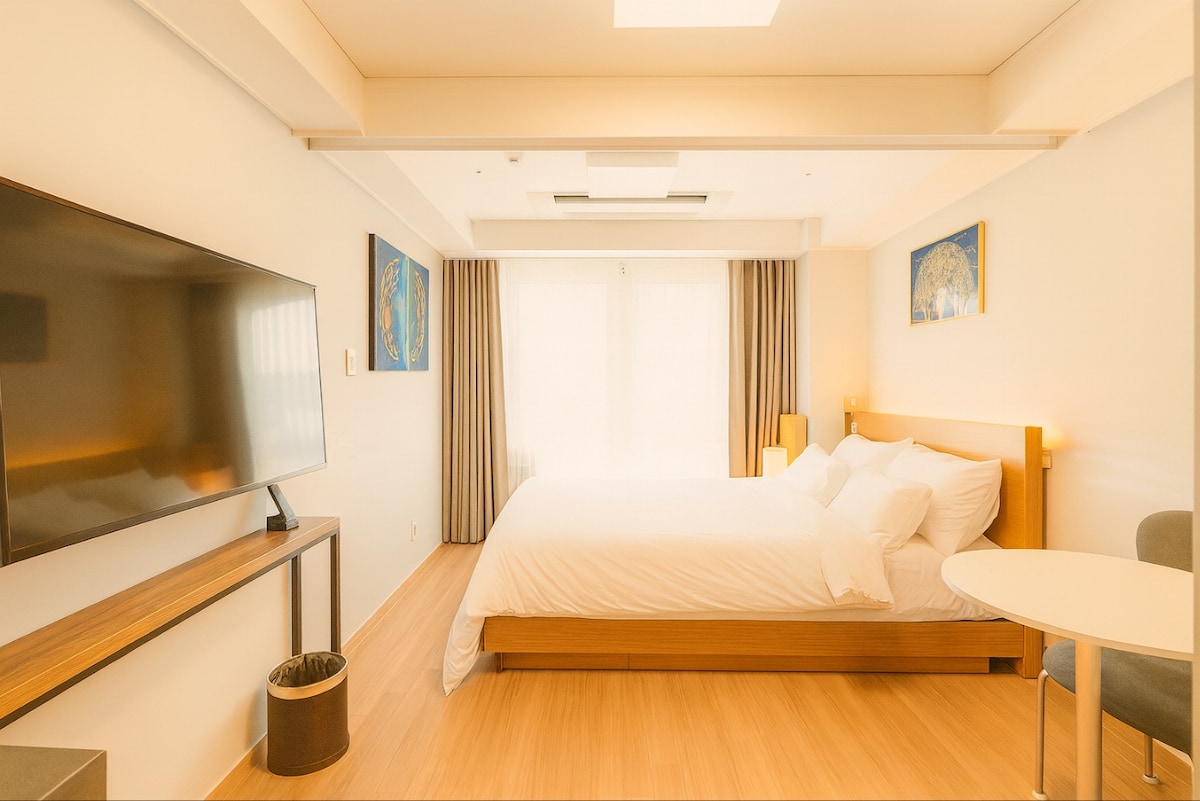 Hello! This is Kim Mi-sook, the daughter of host Kim Myeong-soo.😊😊 It is a warm and cozy sensational accommodation, decorated with rattan props on an ivory background. This property is located near Sacheon Beach, Gangneung This accommodation is located close to the sea.I hope everyone who stays here has a comfortable and happy time. [Accommodation Introduction] We've created the best relaxation space with a clean and modern interior. A space full of sensibility where you can quietly stay on the land where the sky and sand meet, make good memories in the sandy sky. [Room type] Studio type (1 queen + kitchen + 1 toilet) *Bedding is provided according to the number of people booked.