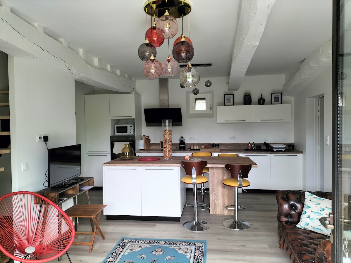 Kick back and relax in this calm, stylish space. Nestled on the 7th and top floor of the Trespoey Residence, the Canopée suite, designed as a hotel suite with fully equipped kitchen, will seduce you. It was designed with noble and ecological materials (wood, granite, A+ paint, etc.) while being functional with a minimalist and contemporary design. The location is in Pau's most popular residential area with easy, free parking.