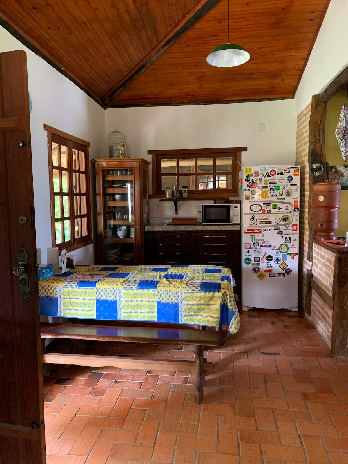 O apartamento estilo kitnet com quarto com duas camas de solteiro, banheiro, cozinha toda equipada, sala e um quintal florido e abundante de plantas. Ele fica no segundo andar do estúdio de Pilates da cidade, caso tenha interesse, nos pergunte o contato da profissional para que reserve uma sessão nos dias de sua estadia. É um espaço harmonioso e aconchegante. Oferecemos eventualmente quando possível, de cortesia, ovos, frutas, raízes, legumes e ervas da nossa granja, horta e pomar.