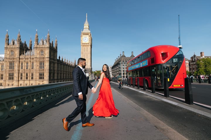 Discover London's iconic landmarks with a quick photoshoot. The session includes photos taken at 6 locations in Westminster for up to 4 people. Receive 25 edited images within 3 days.