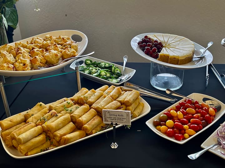 Combining formal culinary training with my cultural roots, I've catered weddings, Stanford University events, and more.