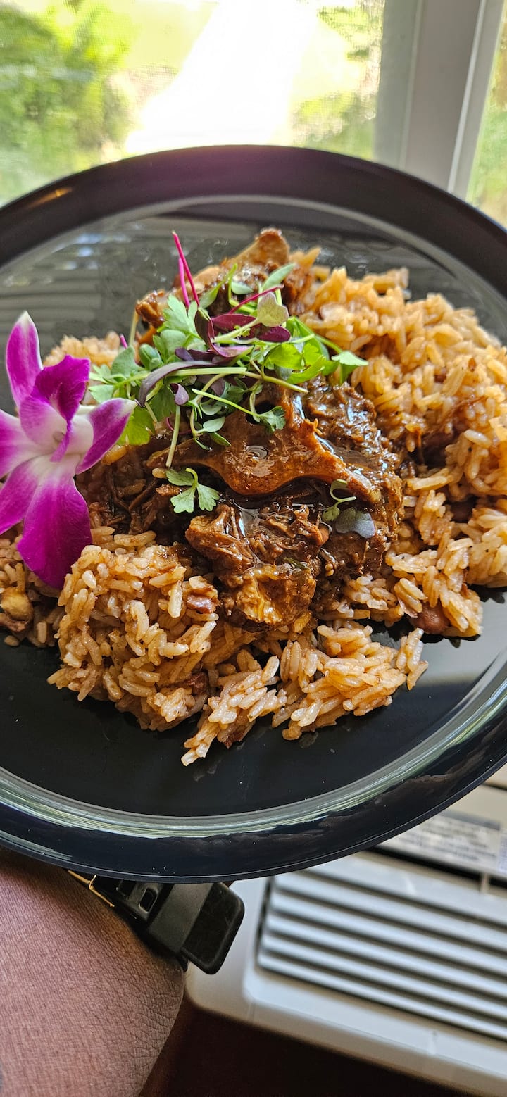 Enjoy tender, slow-braised oxtails simmered in rich, savory gravy, served over fragrant rice and hearty beans. This soulful, mouthwatering classic is packed with deep, comforting flavors.