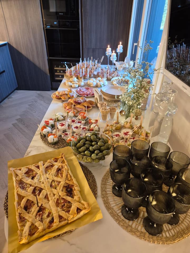 This is our most popular offer: the menu includes several appetizers, a first course, a second course with a side dish, and a dessert. It is the perfect solution for those who want a lunch or dinner sitting at the table, with hot dishes. This menu also takes into account the seasonality of the raw ingredients. Gluten-free, vegan, and vegetarian options are always available. (Drinks are not included but can be requested separately). Delivery and accessories are quoted separately.