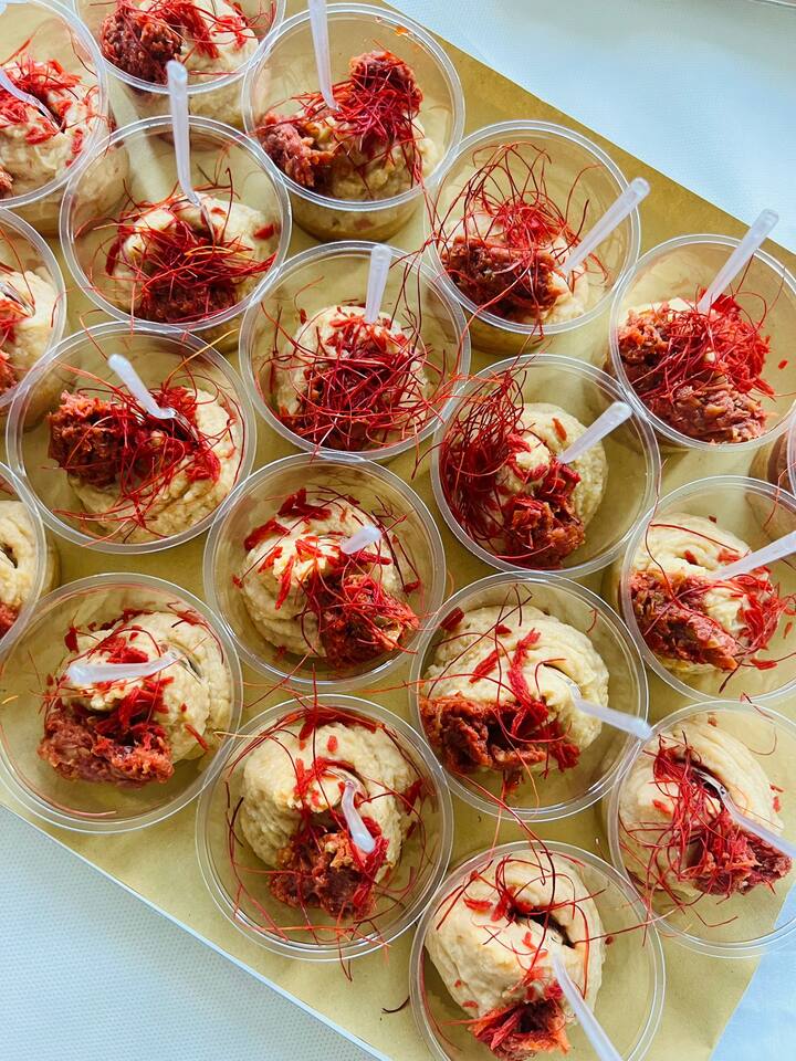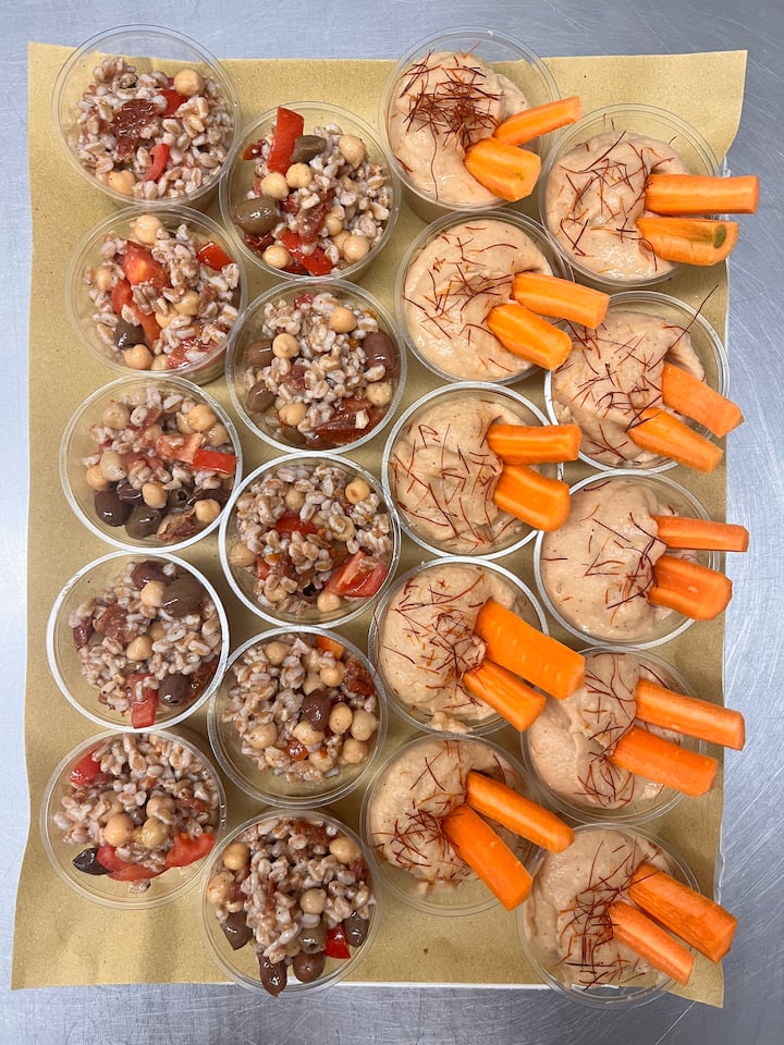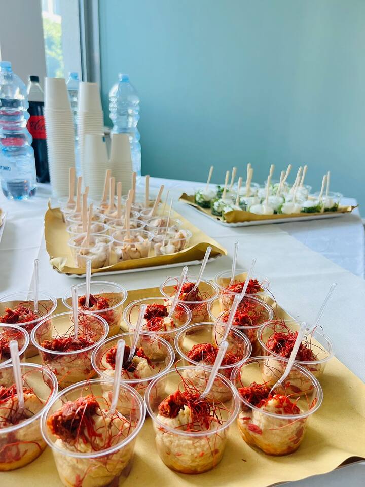 This special formula is the most popular with our customers and is designed to replace the main meal: the menu in fact includes several proposals to allow you to set up a buffet based on single servings in a glass, mini savory croissants, leavened items... (drinks are not included). Gluten-free, vegan and vegetarian options are available, and first courses to be heated on site are also available! (delivery and accessories quoted separately)