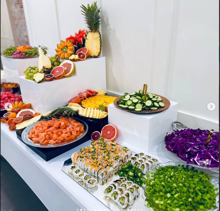 Elevated sushi displays chef-selected rolls, nigiri, and signature bites, artfully presented on tiered platters. Pricing is per person and based on a minimum curated selection, with quantities scaled by popularity. Additional sushi styles or custom requests may be added upon discussion. Per-person pricing decreases with larger groups and increases with smaller groups. All ingredients, setup, equipment, and Airbnb platform fees are included. Optional servers and live sushi service may be added.
