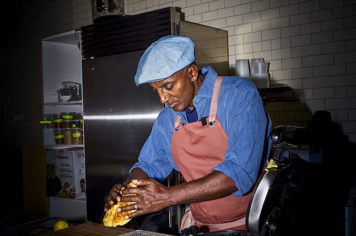 Delivered fresh to your door between 8AM - 8PM. Dig into Chef Marcus Samuellson's iconic fried chicken, double-dredged for extra crunch, seasoned with BBQ spice, and stacked on a warm buttermilk-cornmeal waffle. A dollop of masala-spiced butter melts over the top. And on the side? A sweet-salty miso hot honey and a dash of hot sauce for that classic Southern snap with a global twist. Includes 1 meal per guest.