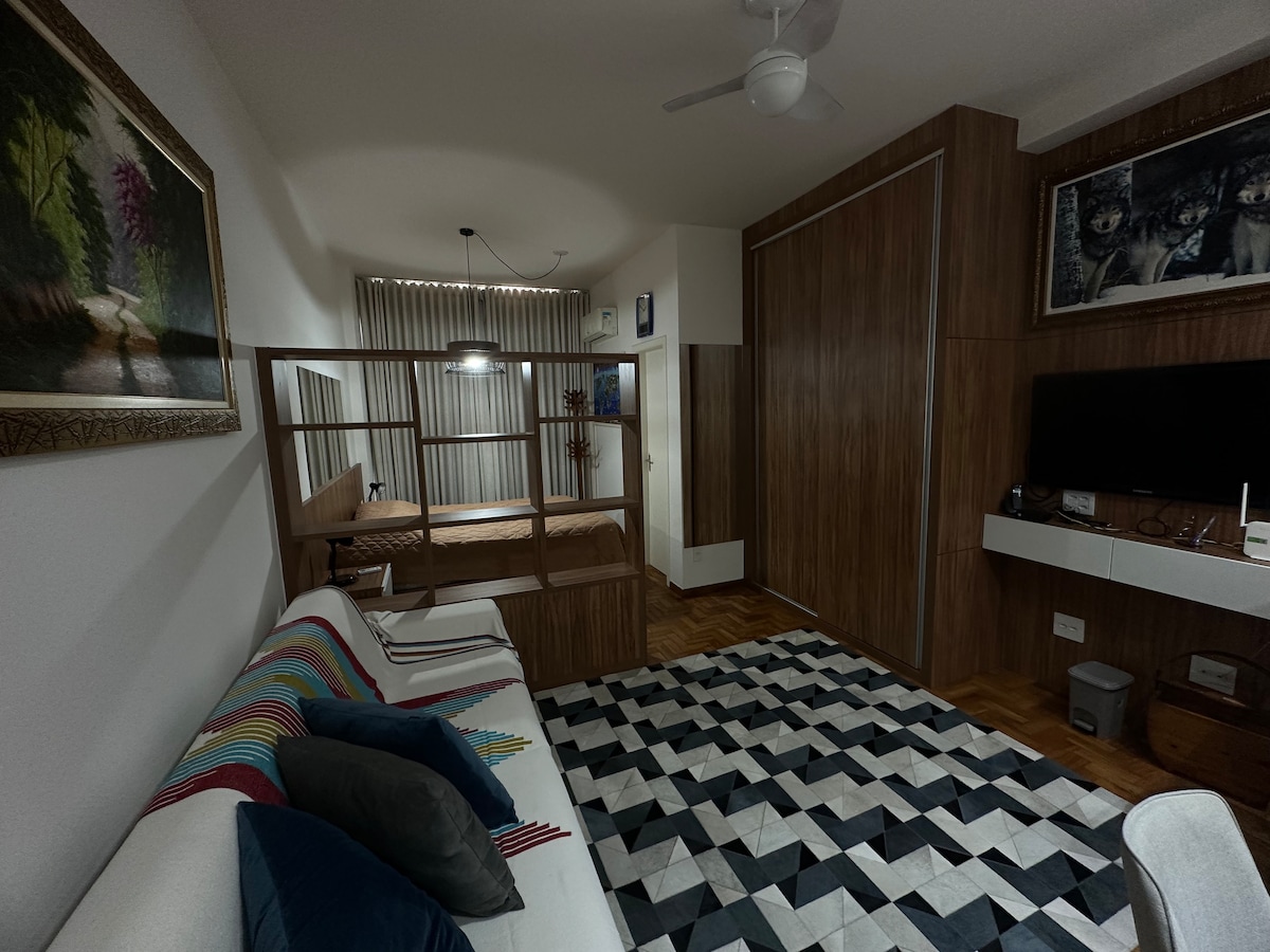 The Studio is quiet and sleeps up to 3 guests. With linen, iron, dryer, full kitchen and Wi-Fi internet. Located in the South Central region of Belo Horizonte, next to Shopping Cidade and Sesc Palladium. Close to the Palace of Arts, Municipal Park, Squares: Estação, Sete, Raul Soares and Liberdade, Minascentro and Central Market. Private 24-hour parking, 100 meters away Feel free to ask any questions! CARNIVAL 2026 Minimum 5 nights and 2 Guests