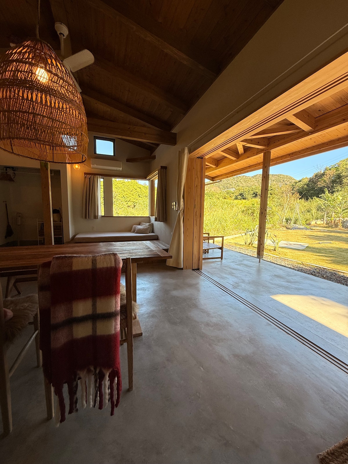奄美空港から車で約30分、太平洋に面したミカン畑の奥に佇む木造平家の1棟貸し宿。ホテルとは違う【暮らし】の体感。心地よい波音と鳥のさえずりで目覚め水平線から現れる朝日のエネルギーを肌で感じ自然体でいられるプライベート空間を大切に過ごしたい。そんな思いの詰まった宿です。 6畳の寝室と13畳のリビングからは奄美の空と海がパノラマ状に映り最高に贅沢な景色が楽しめます。ビーチへは徒歩数分で行く事が可能で、朝の海岸散歩は格別です。アメニティー完備。キッチンには調理器具、食器も揃えています。海に面した芝生のお庭では、バーベキュー(有料)もお楽しみいただけます。お子様も大歓迎です。 お買い物には、車で約5〜10分圏内にスーパービッグツー(奄美のお土産を豊富に取り揃えています。)、まーさん市場、ドラッグストアモリ、コンビニがあります。また飲食店は、ジョイフル、焼き鳥屋てっちゃん、鶏飯ひさ倉、地場産の野菜を使用したイタリアン•アジア系のお洒落なお店があります。 当施設はお客様のプライベート時間を大切にしていただくためにホスト不在型です。休暇を楽しむための家としてのんびりお過ごしいただけたら幸いです。