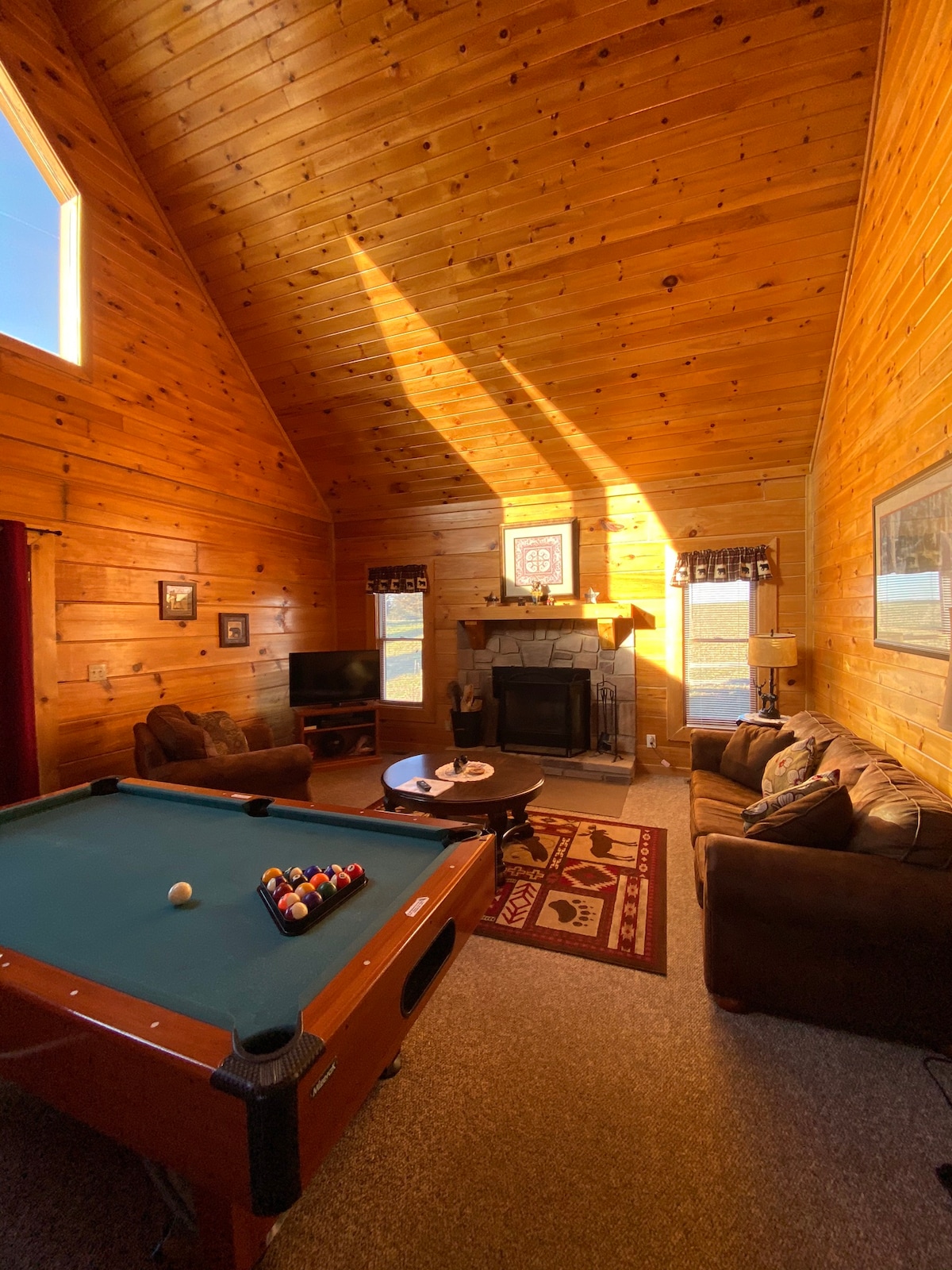 Wet Your Whistle is a PRIVATE 1/1 with loft with pool table on one of the highest mountains in Wears Valley Just off the 321 Wear Valley Road. 4x4 adventure awaits experience with MTN driving a plus! SPECTACULAR views from the wrap around deck! Wild West Theme decor, pool table, hot tub, and floor to ceiling windows. The cabin offers guests full bathroom, Livingroom, kitchen, gas fireplace, Roku Smart TVs, FAST WIFI washer & dryer and a Propane GRILL! ,with covered porch.