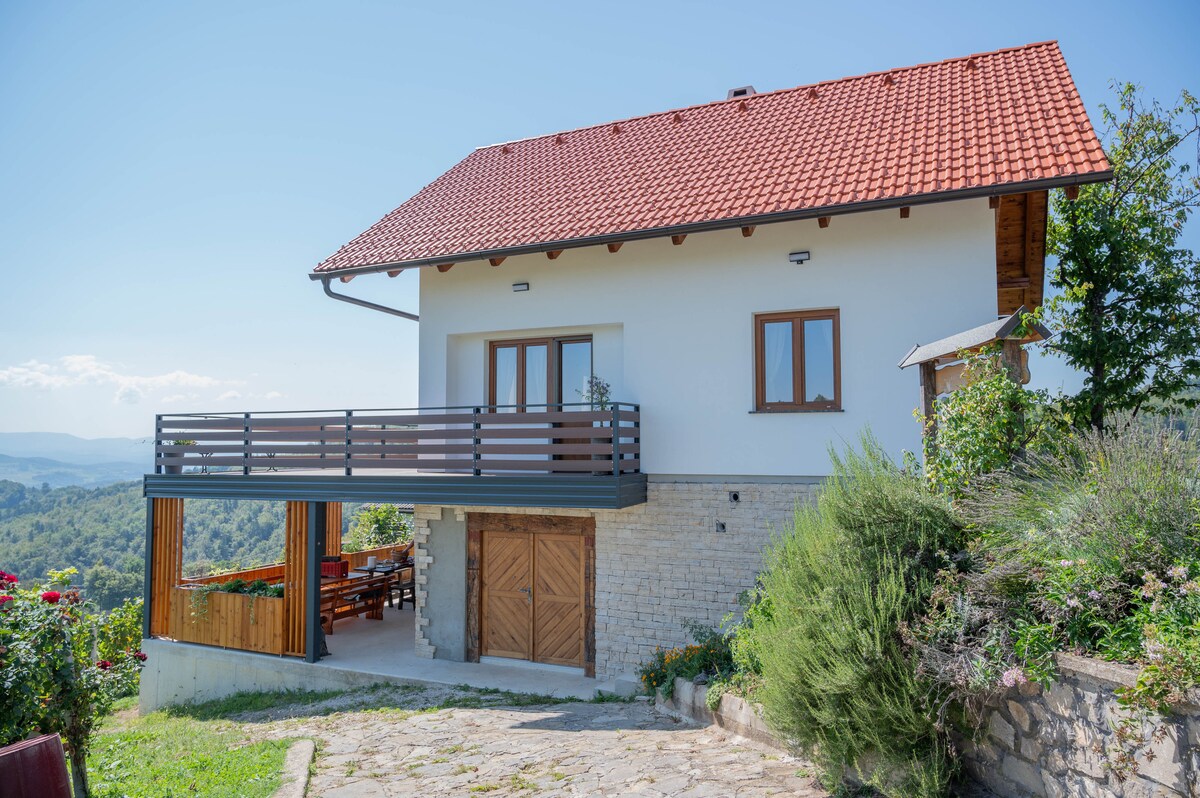 Country House Mirt is charming, newly build property. It has wine cellar with two floors. Classical style of construction, typical for vineyard culture, with beautiful details made by wood. Country House also feature a terrace and balcony with beautiful vineyard view on the hills of charming little village called Blanca. Country House is build on the sunny side of the hills, so you can enjoy in sunshine the whole day. Country House Mirt is located 2 km from little village Blanca and 6 km away from city Sevnica. Country House Mirt is beautiful accommodation with its refined details, which fulfil your every wish for relaxation and recreation in an elegant but comfortable way.