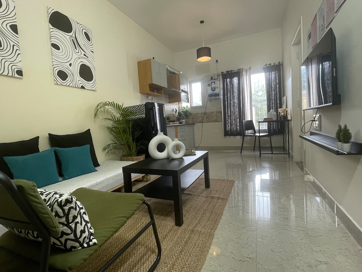 Cozy 1BHK apartment in the heart of Koramangala. Thoughtfully designed for comfort and relaxation. Fully equipped kitchen for your convenience. Smart TV and high-speed Wi-Fi for entertainment and connectivity. Secure keyless entry for hassle-free check-in. Proximity to local cafes, restaurants, and shops. Accessible to public transportation for exploring Bangalore.
