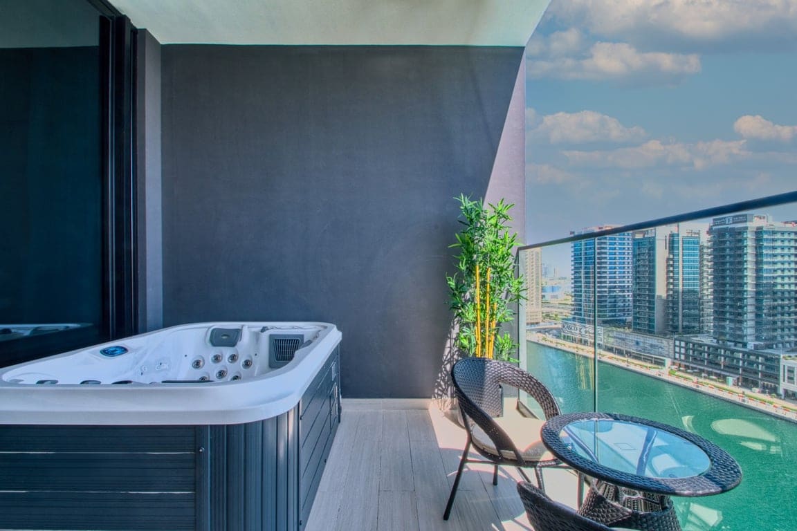 Experience elevated living in this spacious 1-bedroom apartment in prestigious Business Bay with canal views and a private jacuzzi on the balcony - a rare feature in Dubai Features: -Large living room + dining area -Fully equipped kitchen (ideal for longer stays) -Queen-size bed + premium linens -Private balcony with jacuzzi & canal view -Smart TV , pool , gym and parking access Perfect for couples or business travelers seeking luxury and space .Minutes from Downtown , Dubai Mall and B.Khalifa