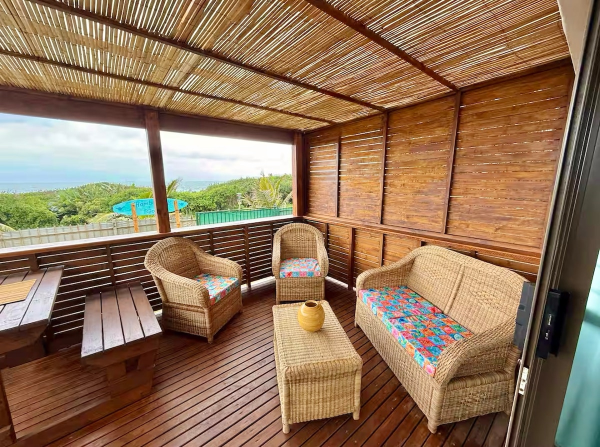 Quaint, comfortable, well equipped front row garden unit. Uncapped fibre wifi and 1KVA UPS. Sea views from all rooms. Direct easy beach access down a locked gated pathway. Lovely swimming pool. 20 minutes from Ushaka airport. Close to shopping centres, restaurants, animal farm and golf courses. The perfect spot to relax and unwind. You will feel miles away from everything but convenient to many shops, amenities and activities. Ideal for young families or a couples retreat.
