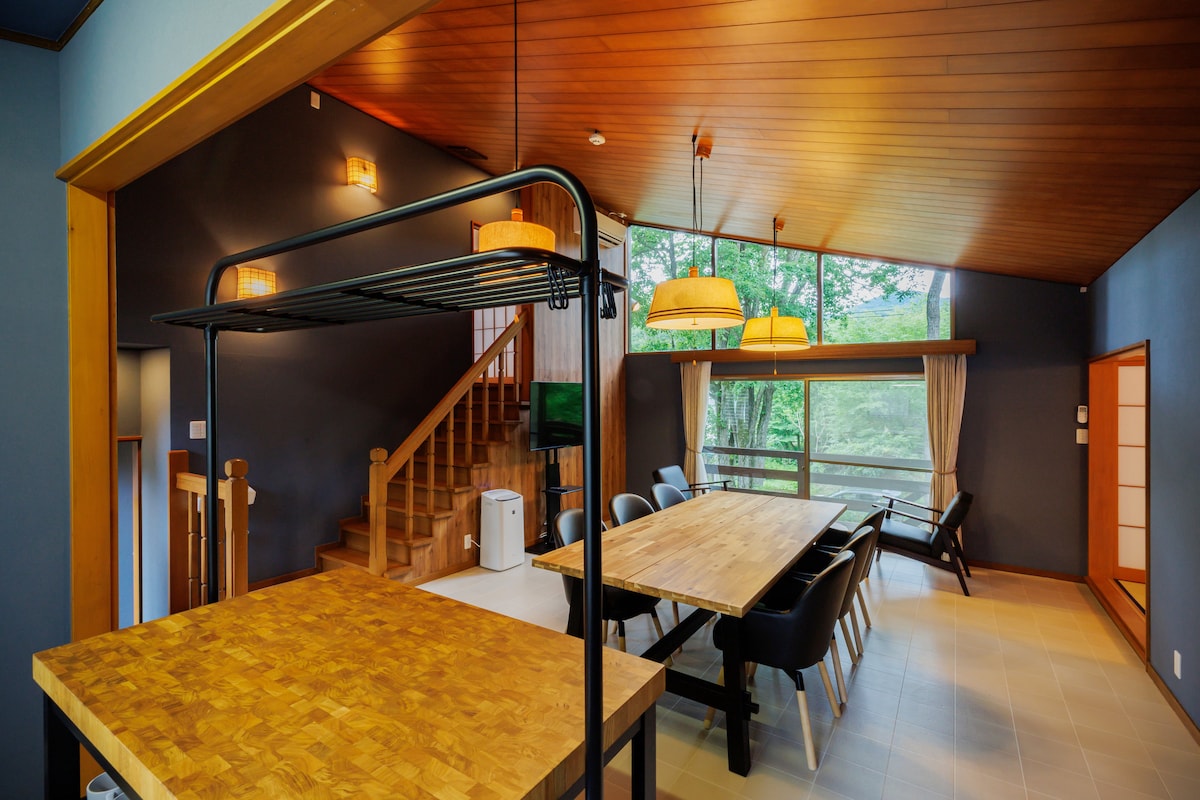 U pause welcomes digital nomads. Free wifi is available in the entire rental villa. We provide a comfortable remote work environment. High ceilings and an open living room welcome guests. The loft-style decor is exciting with a theater-like atmosphere. The Japanese-style interior and wooden interior are harmonious, and the interior feels calm and warm. The windows offer views of Zao's green and autumn leaves. Perfect for a relaxing holiday. # About the accommodation plan "U pause" is a private rental limited to one group per day, for up to 9 people. The accommodation fee is the same for up to 4 people, and an additional fee will be charged for each additional person from 5 people. * Meals are not included in the accommodation fee. ※ There is no child rate. Children over 2 years old will be charged the same amount as adults.