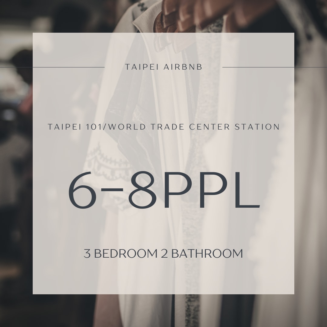 -人數不同,收費不同,請選擇正確的人數以及日期 請依照預定人數(包含小朋友)入住(禁止訪客) 捷運台北101/世貿站 2 分鐘 禁止開PARTY、吵鬧(特別是晚上請注意音量控制) 入住期間請隨時注意音量,且不做出任何打擾鄰居的行為!! 請大家共同維護鄰里的生活品質。 *入住時間為04:00 pm〜00:00 am * 可於12:00pm後放置行李至房內 (不負保管責任,請將個人貴重物品帶在身上) 請注意 ! 退房後無寄存行李服務 我們是AIRBNB不是HOTEL (無法配合房屋守則,請不要訂房) 沒有LOBBY可以寄存行李 但是可以為您推薦周邊寄存行李位置 Thank you so much for your order. You made our day. We hope you have a lovely day and see you soon