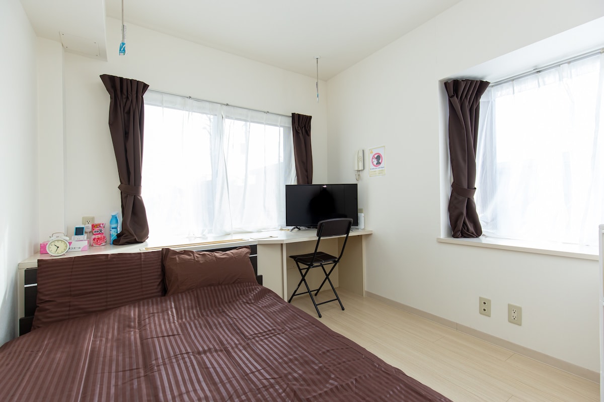 This room is a one-room apartment. Guests have exclusive use of a 7-tatami bedroom, kitchen, bathroom, and toilet. The room has a double bed, table, chairs, and TV. Free WiFi is also available, so you can use it for remote work. The kitchen is equipped with a washing machine, fridge, microwave, electric pot, frying pan, pots, and dishes, so you can cook for yourself. The bathroom is equipped with shampoo, conditioner, body shampoo, hair dryer, face towels, and bath towels. A convenience store (7-Eleven) is located just 4 minutes away on foot. We lend bicycles for free. The host also provides a taxi booking service for those who wish to use it. We're here to help you enjoy your trip to Japan!