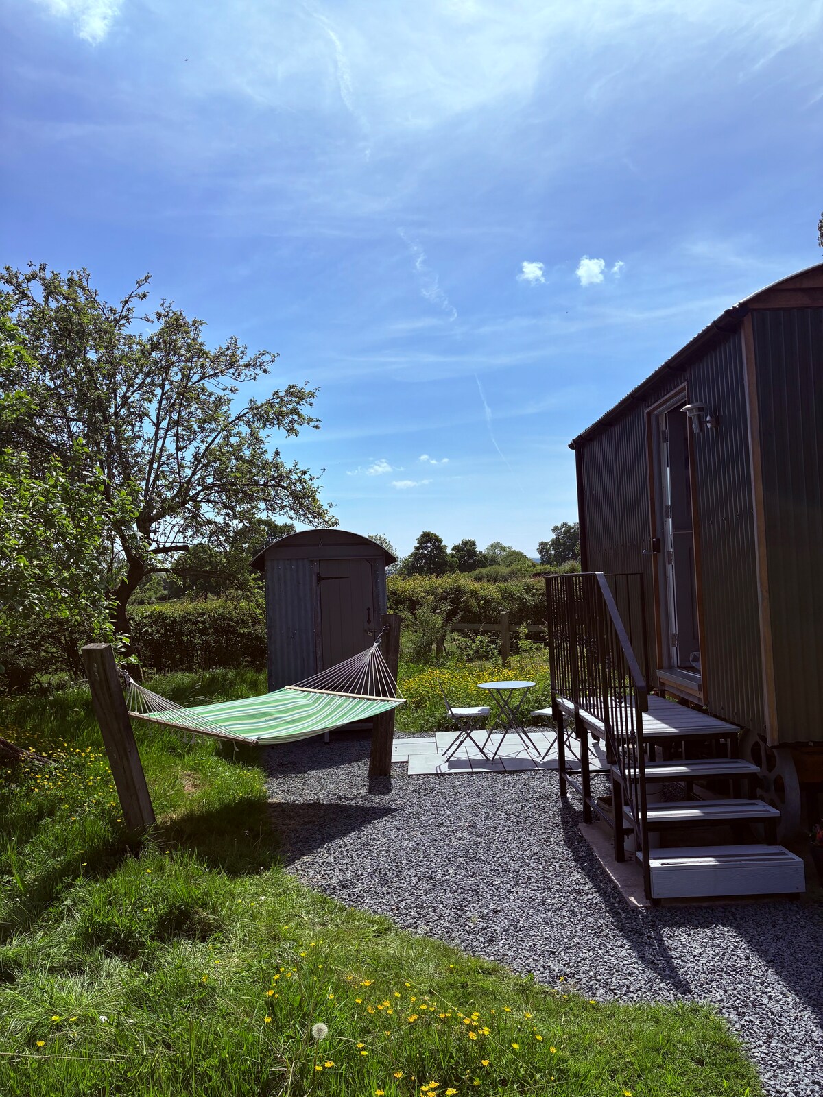 Beautiful, private Shepherd's hut overlooking lake