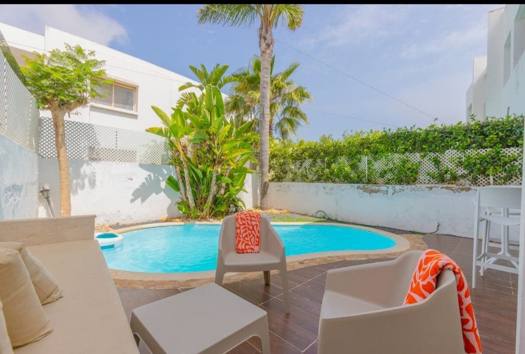 This peaceful family home offers a relaxing stay. * Private garden and pool. * 5 min to the beach. * Restaurants, Shops and supermarkets ( Marjane and Carrefour) nearby with the possibility of getting delivered (groceries and food). * 5 min from the small port (the Mrissa ) for fish lovers. * Secure residence. * Private parking * 55"TV. * 200Mb fiber optic. * Iptv, Netflix and Shahid subscription. This unit only accepts families or married couples.