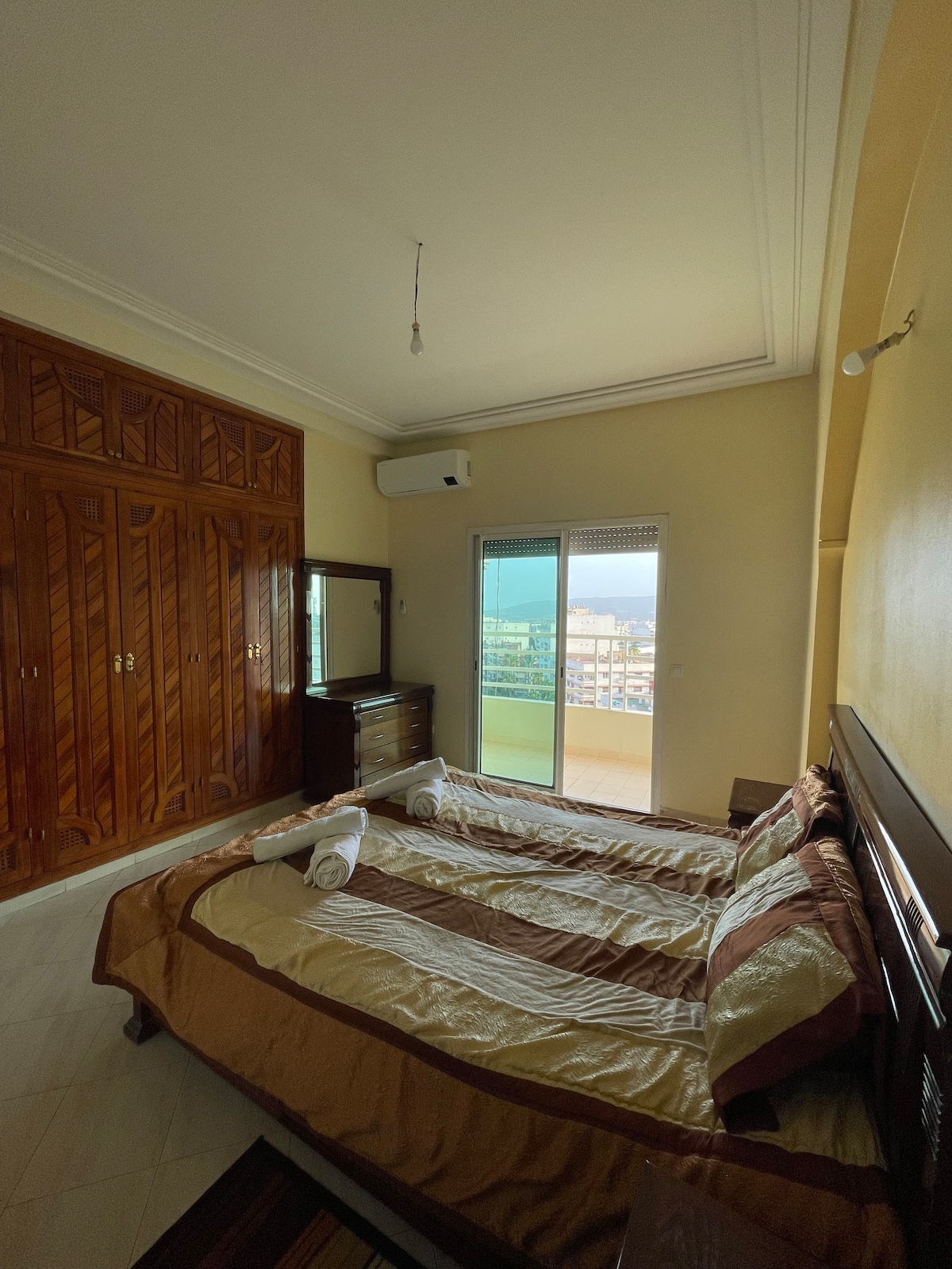 Spacious apartment with a fully equipped kitchen, three bedrooms, two of which have air conditioning. Modern air-conditioned living room equipped with a large TV and open to a furnished area overlooking the street. It is close to the train station and all the amenities you need. Next to the most important restaurants in the new city and not far from the old city, where Bab Mansour, El Hedim Square and the most important tourist attractions are located. Enjoy with the family.