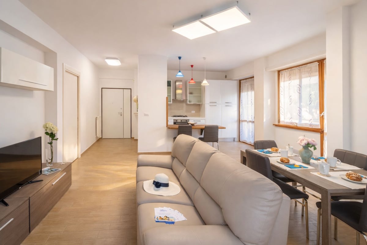 All discounts are already included, please go ahead and book the property if your travel dates are available. Below please see all the listing details "Suite dei Monti", 3-room apartment on 1st floor. Spacious and bright, stylish and cosy furnishings: living/dining room with TV and air conditioning. 1 double bedroom with 1 bed, shower/bidet/WC and air conditioning. 1 double bedroom with shower/bidet/WC, TV and electric heating.