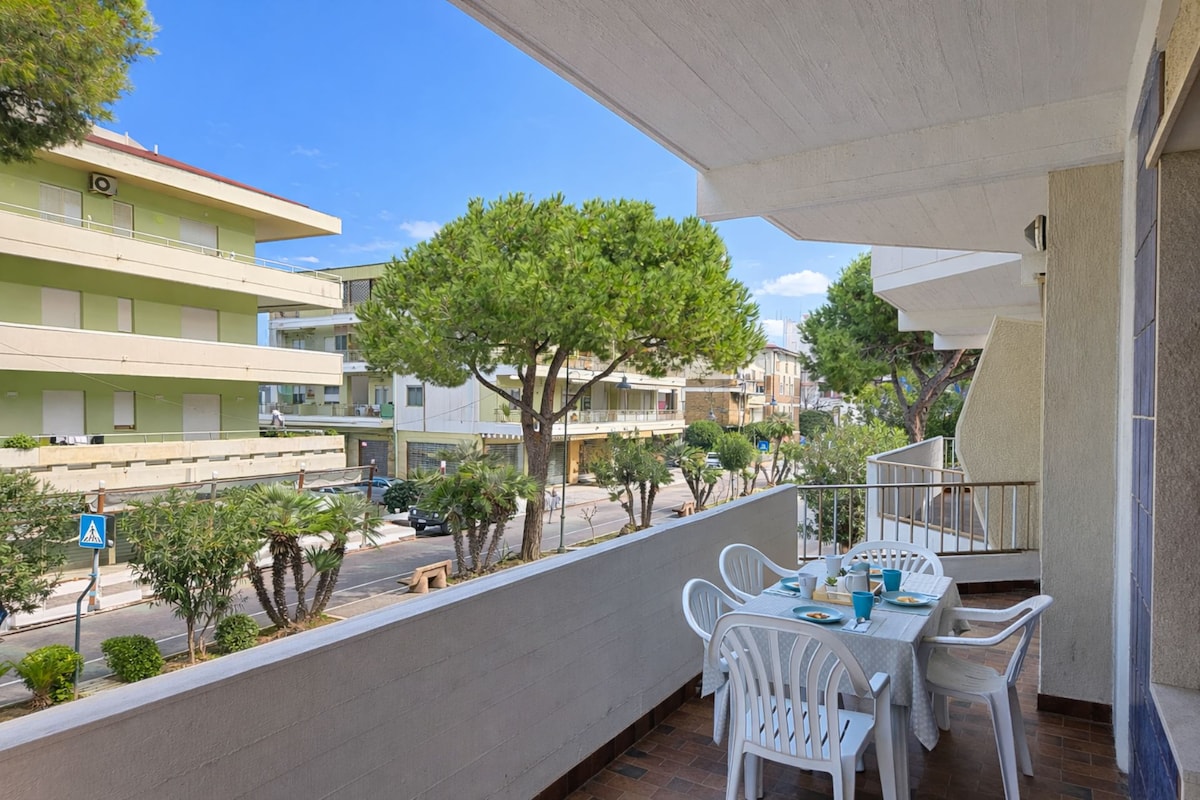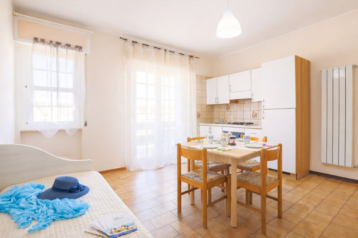 The apartment "Cavalluccio Marino i4" is located on the second floor of a building in the center of Piazza Fermi. Far from the railway, its strategic position allows you to comfortably access the beach, enjoy an evening walk and easily reach the main services.