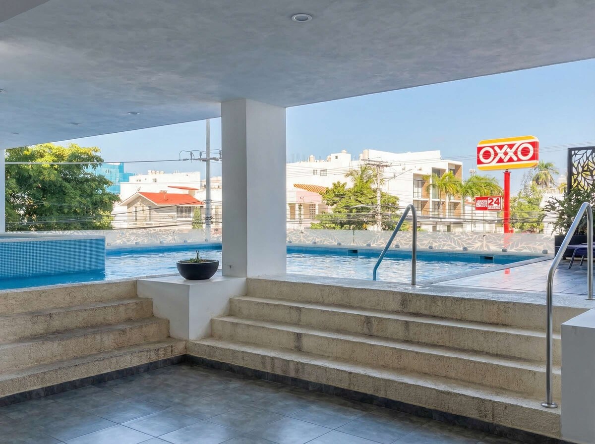 This apartment in the Ibérica building works especially well for families who want to get around Mazatlán easily. It is a few blocks from the Malecón and close to places like the Aquarium and Parque Central. The unit does not have an ocean view, but the building makes up for it with uncommon amenities: a partially covered pool, movie room, gym, game area, and a rooftop with ocean views and a grill.