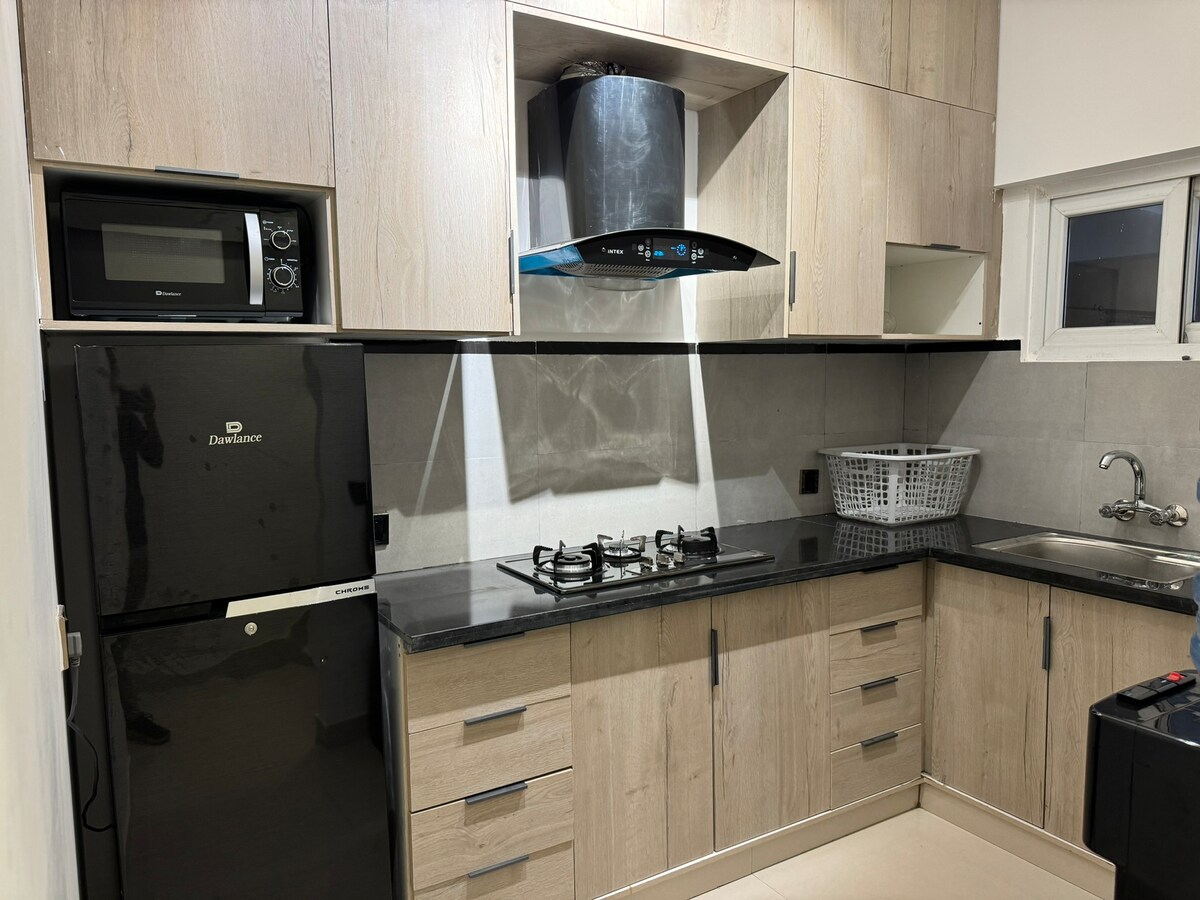 Welcome to your cozy & secure 2-bedroom apartment in DHA Phase 7 Extension! This bright, air-conditioned space offers attached washrooms, a shared kitchen, and rooftop access. Enjoy a great view, natural light, and a peaceful vibe. Located near a chai dhaba, restaurants, parks, and a bank with 24/7 security, convenience is at your doorstep. Smart TV, fast WiFi, easy check-in, and a comfy stay await! Perfect for families, solo travelers, or professionals. Book now and feel at home!