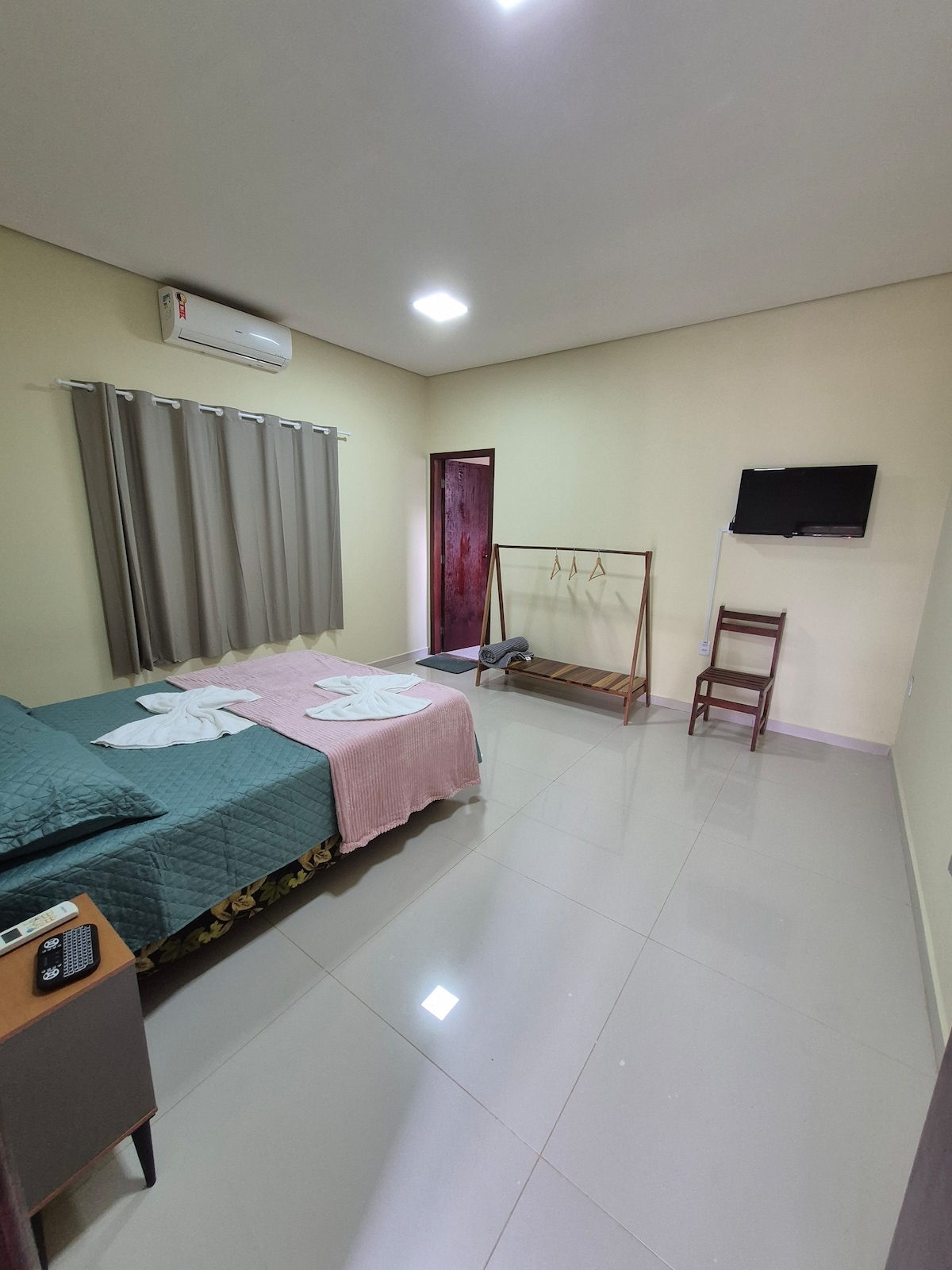 Your family will be close to everything by staying in this well-located place. Close to the mall, Atacadão supermarket, BR 163, Ghizone, Acrinorte, Curupy Aqua Park and downtown. Room with TV, air conditioning and queen bed plus double mattress if you need it. Hot shower, full kitchen, wifi, free parking. We serve complimentary breakfast, starting at 7:00 a.m. EXCEPT on Sundays.