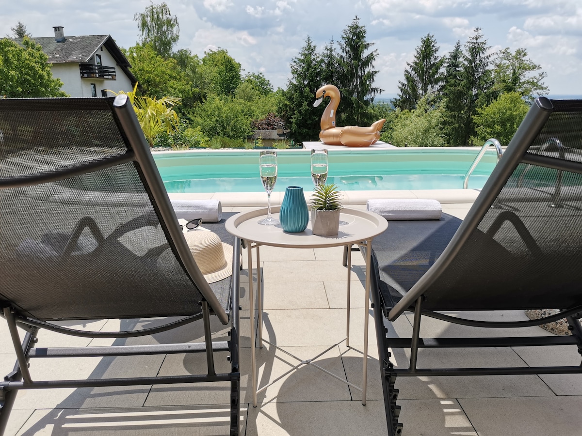 Cvetković hill wooden holiday home with pool
