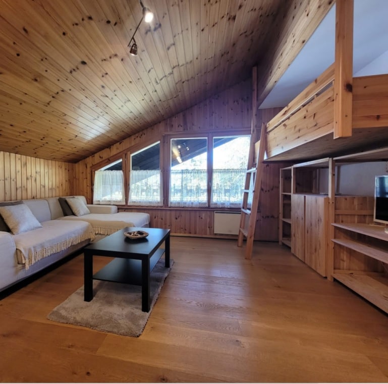 Perched above the forest and river, our bright and cozy cottage is located in a quiet area and a short walk from nature, the river, at the start of hiking trails and 3 minutes from the shuttle (function in winter) Loft ideal for relaxing and unwinding by the fireplace or in the hot tub. Perfect for couples. For more than 2 people on request. It has a bedroom (2 people) and 1 open space under the mezzanine with TV and comfortable sofa bed.