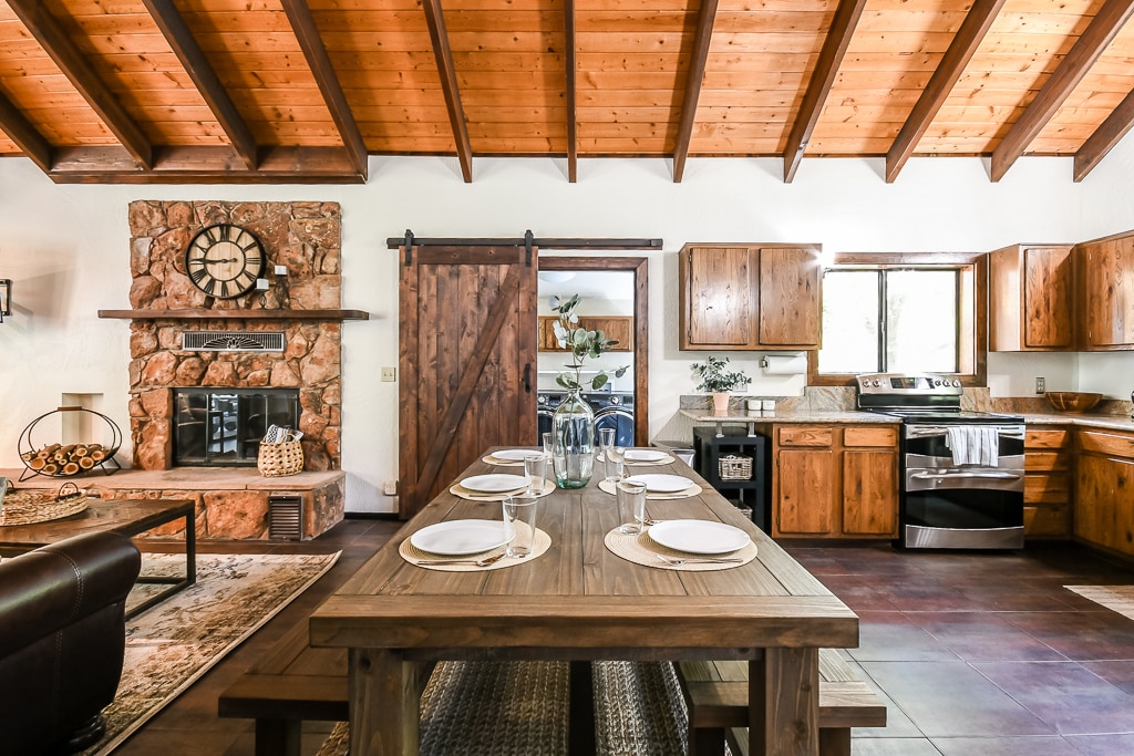 Casa La Courta is located along Oak Creek and is within walking distance to the iconic Cathedral Rock. You can access many other hiking and mountain biking trails from the property. The rustic cabin is on five private acres and is surrounded by pomegranate, fig, apricot and lemon trees and has a grassy yard with a bocce ball court. It’s the perfect spot to unwind and recharge. There is a trail down to the creek, so you can take a dip after a day of hiking. STR Permit #017132